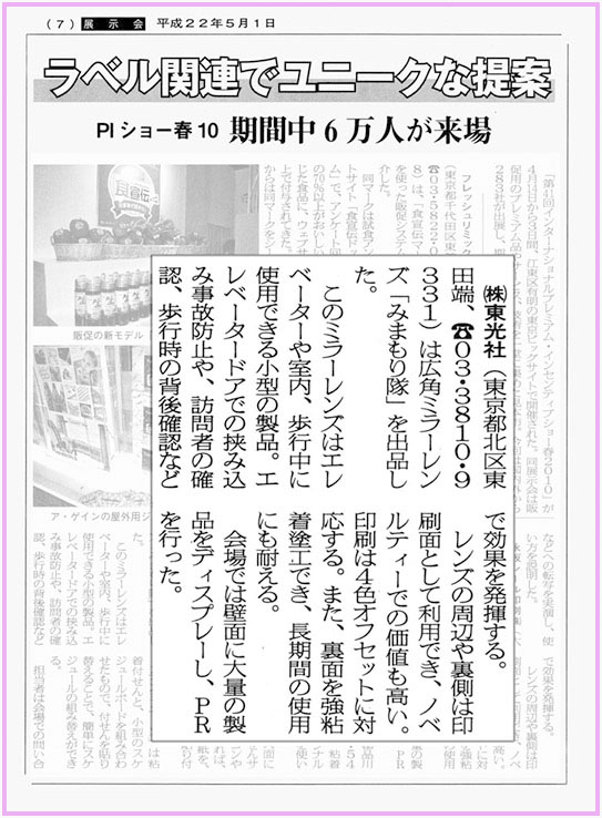 2月12日 日経流通新聞で新商品「広角ミラーレンズ みまもり隊」が取り上げられました。